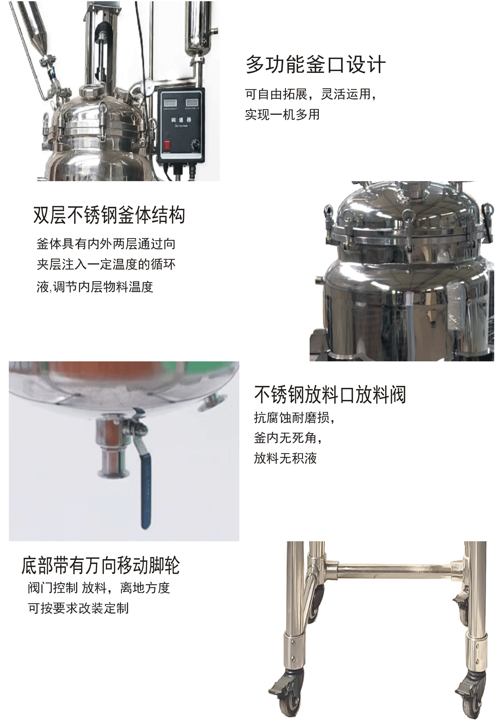 ●夾層的制冷或加熱溶液在反應完畢后,能徹底排除,不積液